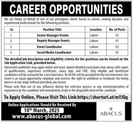 Abacus Global Managment jobs in Lahore Advertisement Download