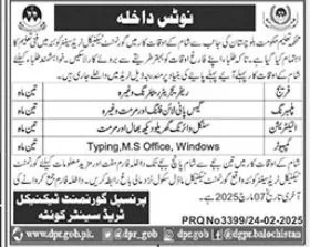 The Government of Balochistan is pleased to announce admissions for evening technical training courses at the Government Technical Training Center, Quetta. These courses are designed to provide valuable skills and enhance employability.