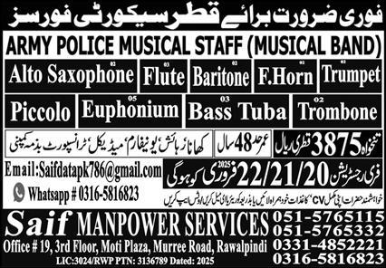 Army Police Musical Staff Jobs In Qatar Advertisement